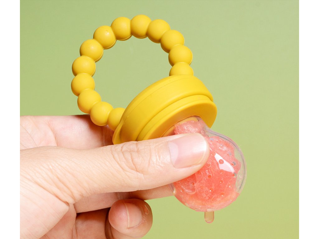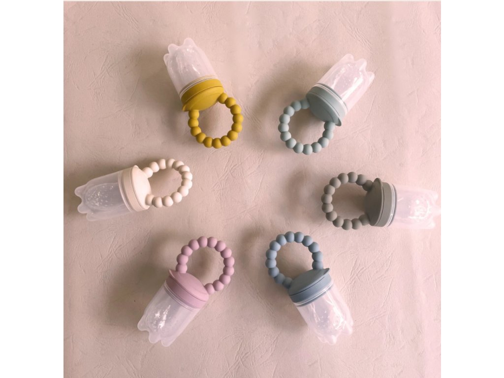 Naše silikonová dětská kousátka a krmítka na ovoce a zeleninu jsou navržená tak, aby stimulovala chuť dítěte na přirozené dobroty z ovoce a zeleniny. Je to také bezpečný způsob, jak seznámit malé děti s pevnou stravou při přechodu do období odstavování a prořezávání zoubků. Toto krmítko může také uklidnit nepříjemné pocity dítěte při prořezávání zoubků tím, že masíruje dásně prostřednictvím žvýkání.